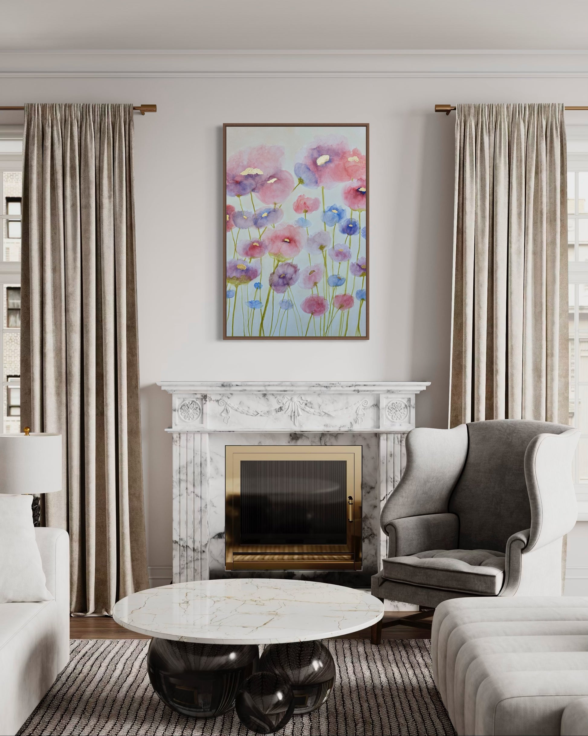 Pink, blue and purple blooms with deep shimmery gold centers.